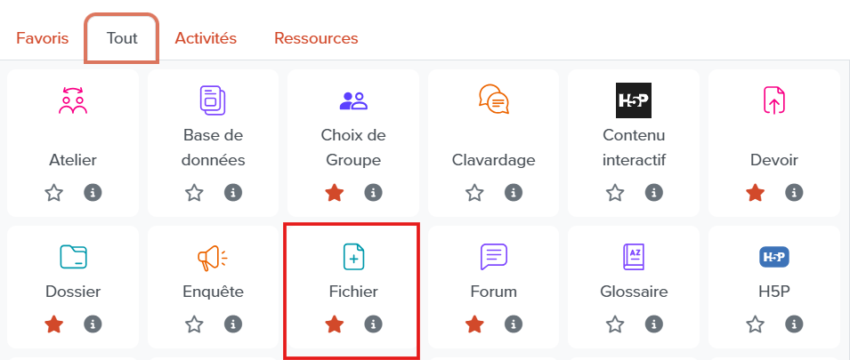 3- Dans le menu déroulant de gauche, sélectionner la ressource Fichier.
