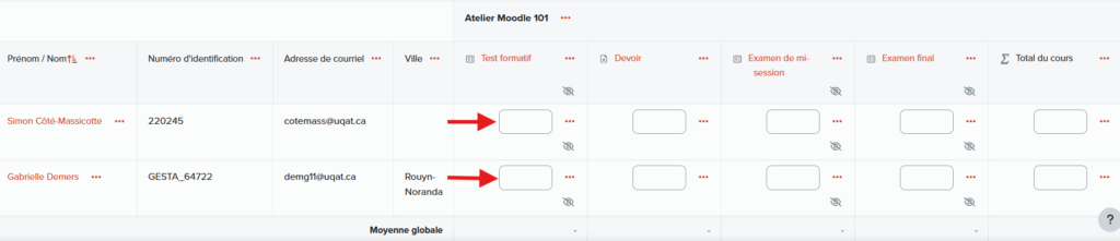 G- Vous pouvez entrer manuellement les notes pour chaque personne étudiante, ou utiliser le bouton