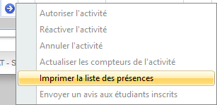 4- Cliquez sur le bouton bleu (flèche) puis sur Imprimer la liste des présences.