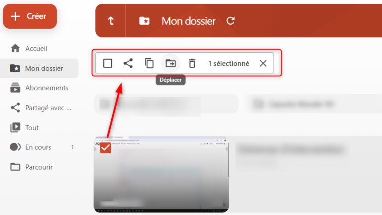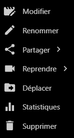 Fait apparaître un menu apparaît offrant quelques options de gestion dont la copie, le déplacement ou la suppression de l’enregistrement.