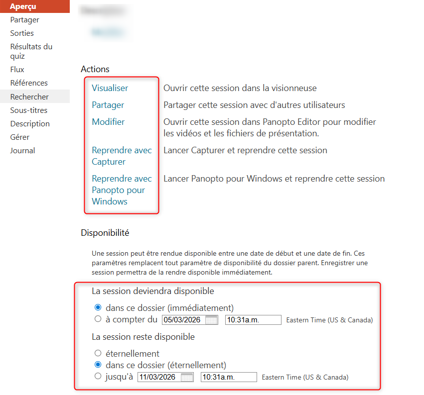Panopto offre à la personne propriétaire d’un enregistrement vidéo un ensemble d’outils complets permettant d’en faire la gestion et de déterminer plusieurs paramètres tels que la modification, le partage et l’organisation de données, ainsi que le contrôle des autorisations d’accès.