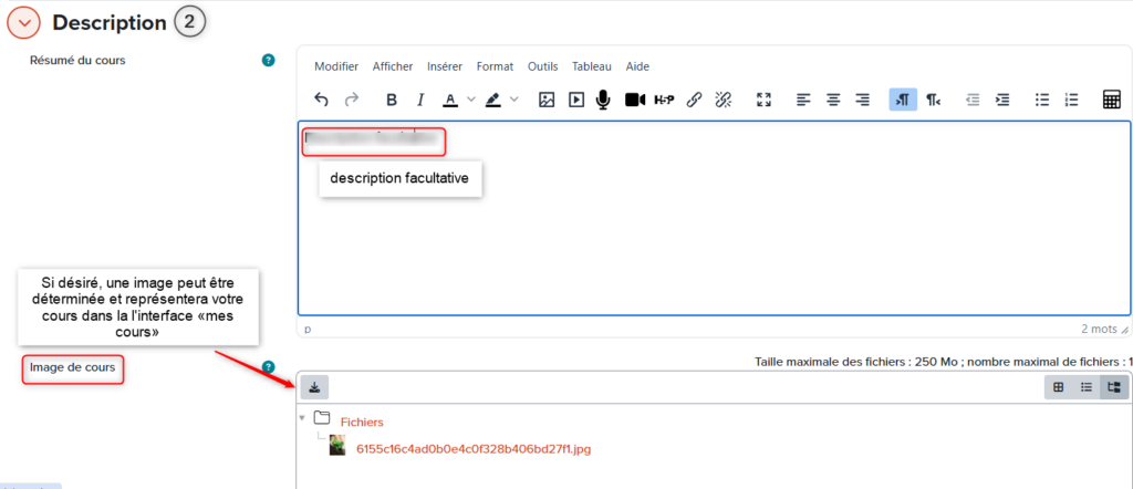 Paramètres d'un cours