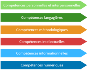 Ce référentiel met en lumière 6 familles de compétences essentielles au « métier d’étudiant·e » et pouvant se développer tout au long de la vie.