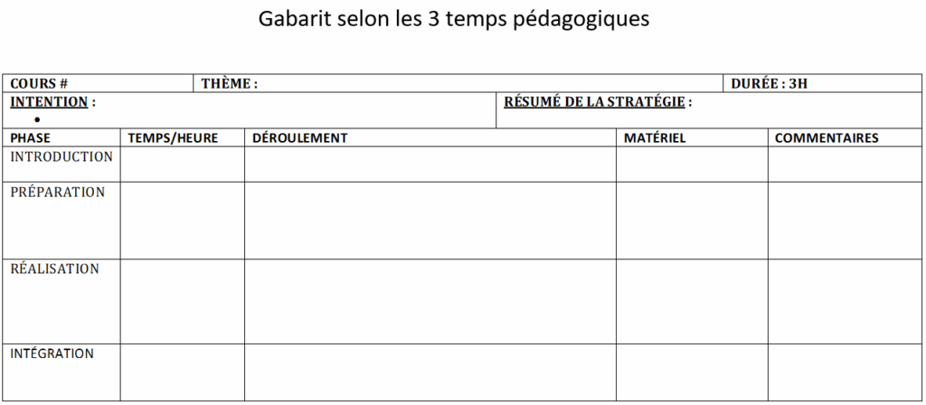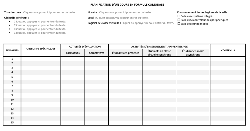 GABARIT WORD Tableau de planification cours comodal